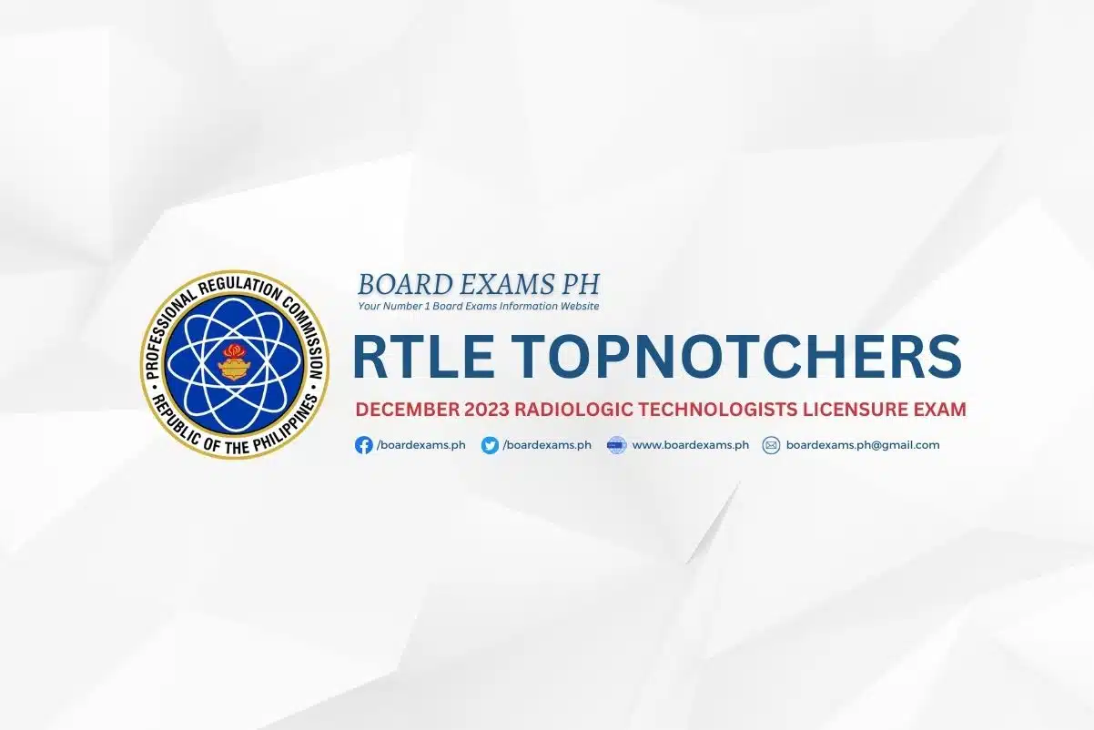 To keep updated on the official results and other updates regarding the conduct of the December 2023 Radiologic Technologists Licensure Exam (RTLE), we advise our visitors to bookmark this page, visit PRC’s official website, follow us on our social media pages: